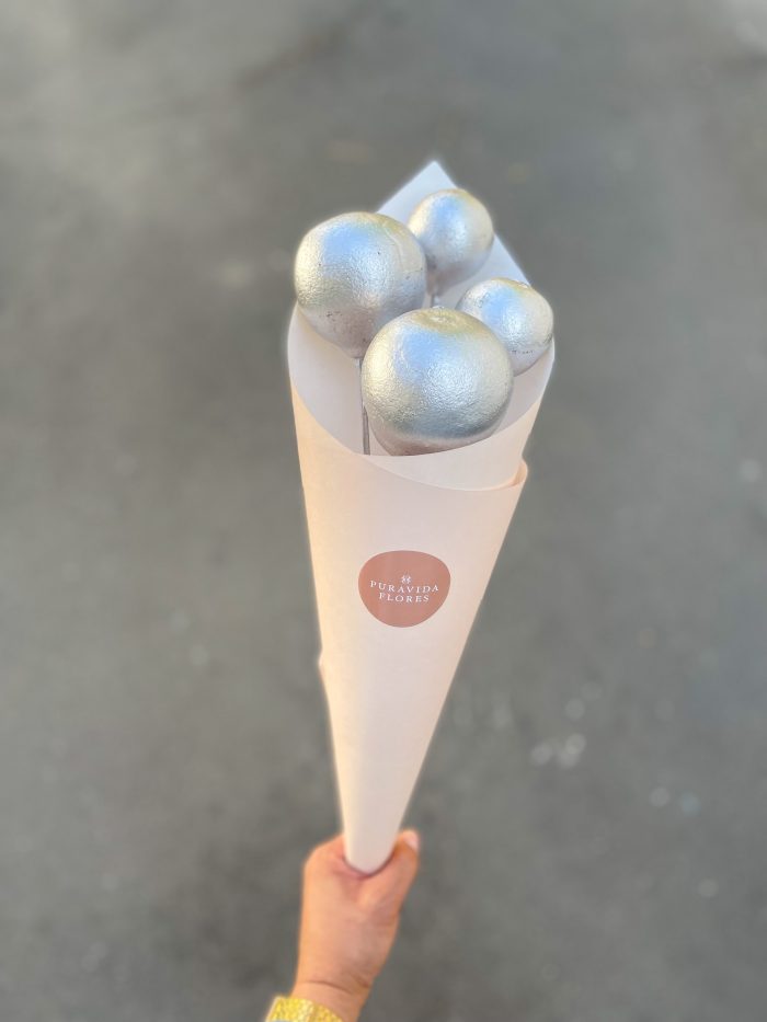 Incluye 5 varas de Bolas plateadas. Largo aproximado 40 cms.