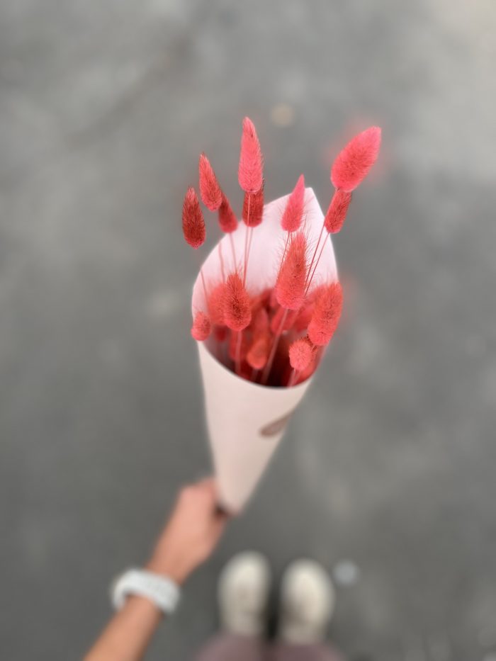 Incluye pequeño Ramo de Bunny Tail Rosado tinturado. Largo aproximado 40 cms.
