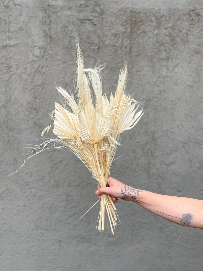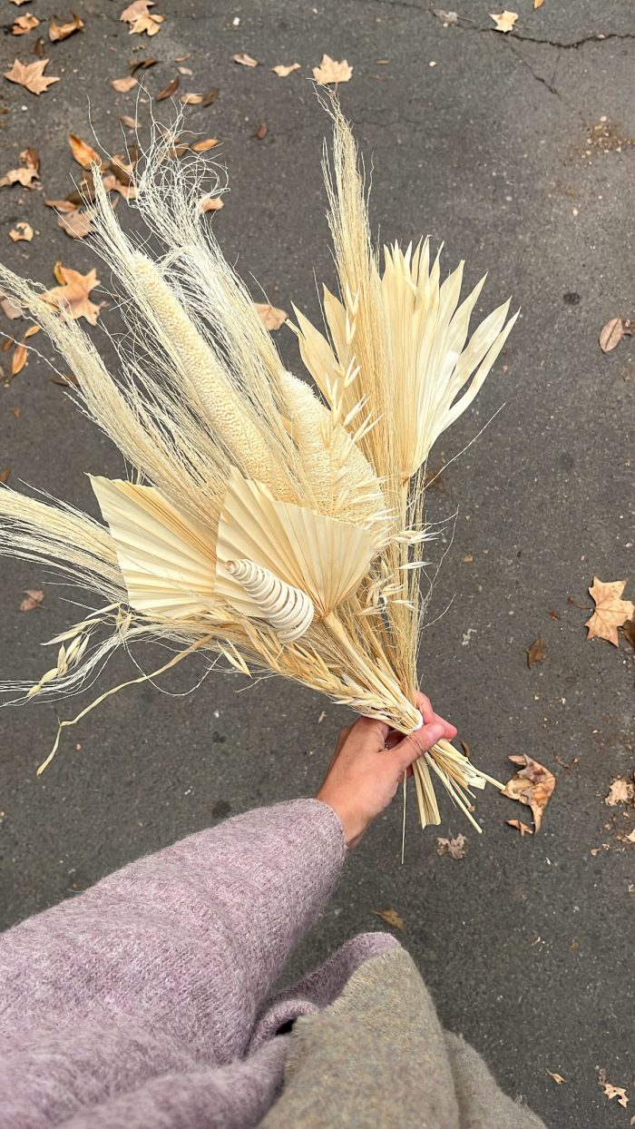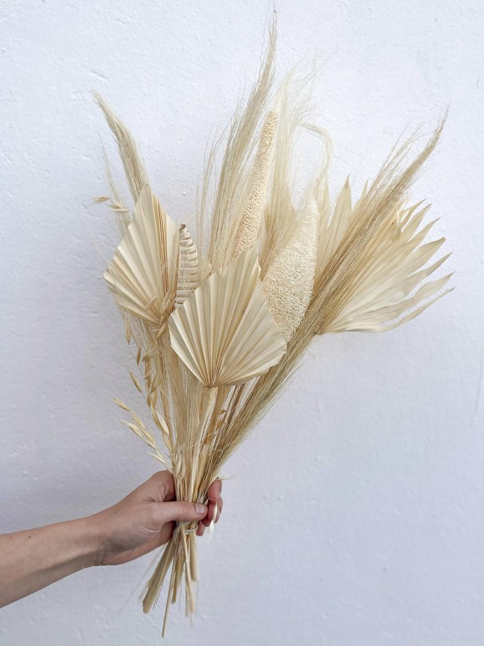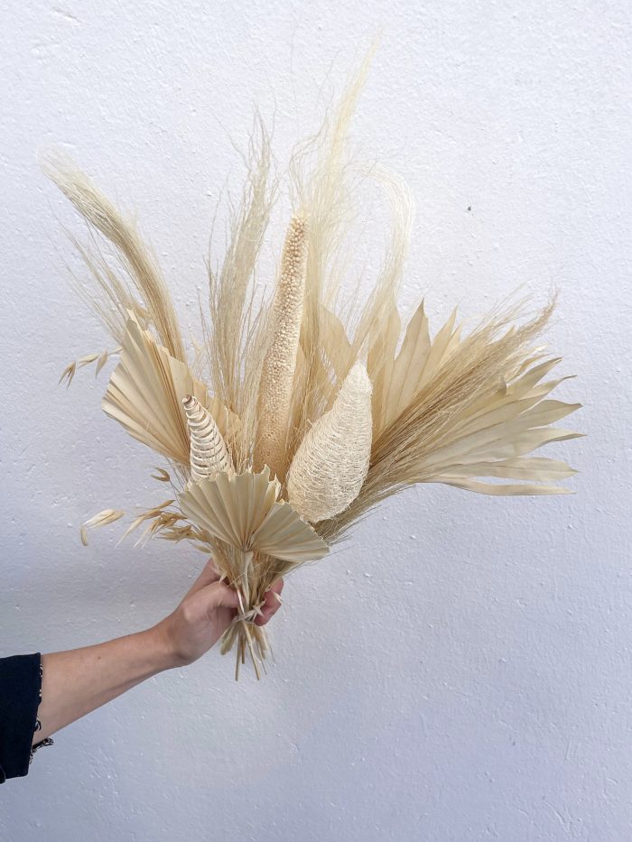 Este cucurucho es ideal para aquellas personas que tienen un estilo nórdico, natural y minimalista. Incluye un mix de flores secas holandesas en blancos y beige envuelto en papel del día. Largo aproximado de 50 cms.
