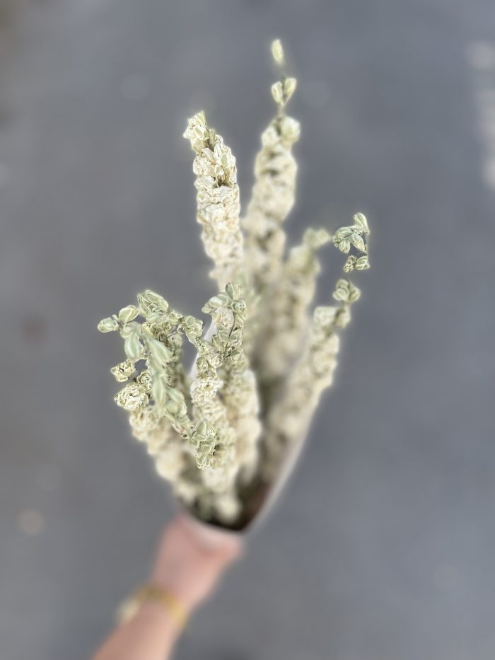 Incluye un ramo de Delphinium Blanco seco. Largo aproximado 50 cms.