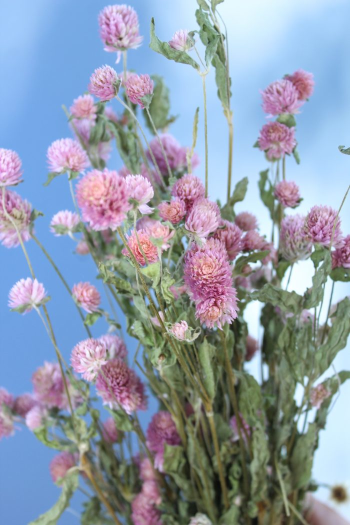 Incluye un pequeño ramo de Gomphrena Rosada. Largo aproximado 30 cms.