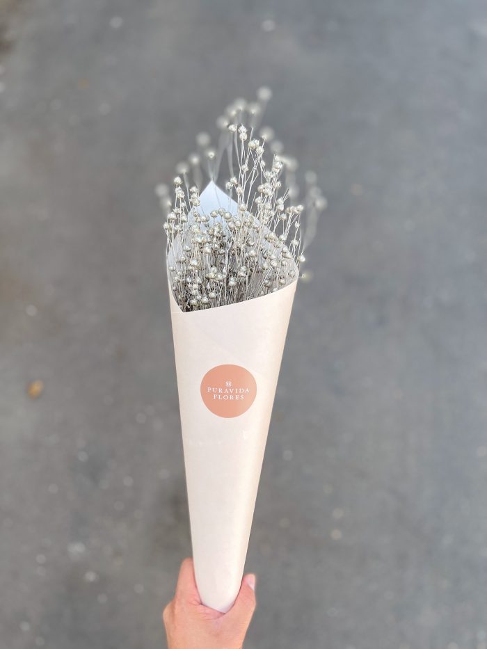 Incluye un ramo de Linaza en tono champagne ideal para esta Navidad. Largo aproximado 40 cms.